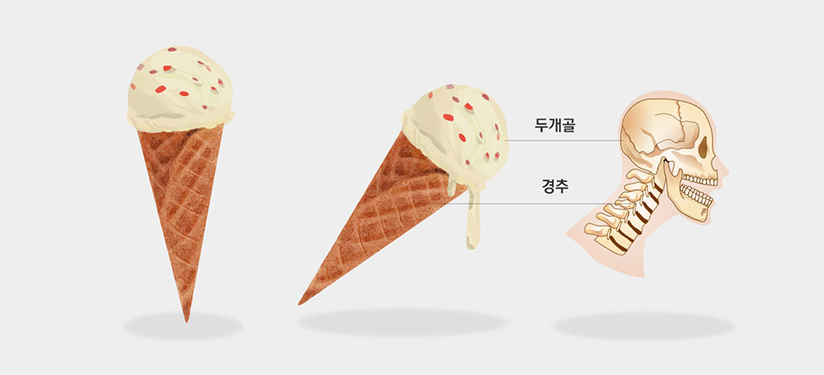 아이스크림 콘(경추)를 똑바로 세운뒤 아이스크림(턱관절)을 올려야 흘러내리지 않는 아이스크림을 유지 할 수 있게 됩니다.