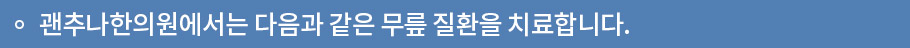 (관절신연요법, 관절교정요법) 무릎관절의 가동범위 증가시키고 관절을 부드럽게 합니다.